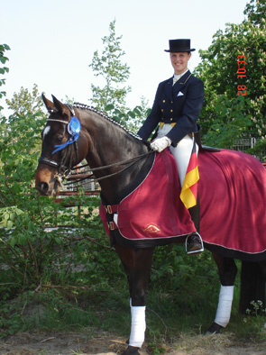 Katrin Rometsch und „Gordons Dry“ wurden vom Bundestrainer der Jungen Reiter für die Teilnahme am "Preis der Besten“ nominiert. Dies ist, neben den Deutschen Meisterschaften, das bedeutendste Turnier für den reiterlichen Spitzennachwuchs. Vom 20. bis 22. Mai findet es auf der Anlage des Deutschen Olympiade Komitees für Reiterei in Warendorf statt. 27 Reiter aus ganz Deutschland wurden nominiert. Darunter sind automatisch diejenigen, die im Bundeskader und bei der Reitenden Bundeswehr reiten. Wir freuen uns besonders über die Nominierung von Katrin Rometsch und „Gordons Dry“, da aus Baden-Württemberg nur 2 Reiterinnen dabei sind und die Anmeldungsfrist zu dieser Veranstaltung eigentlich schon vorbei war, als die tolle Nachricht bei uns eintraf. Wir drücken dem Team kräftig die Daumen, dass beim bevorstehenden Lehrgang des Landestrainers am vergangenen Wochenende und beim internationalen Jugend-Dressur-Festival in Nussloch über Pfingsten die Topform anhält.