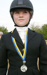 Ena Gerst ritt „Piaff“ im Pony-Führzügel -wettbewerb. Ihre Leistung wurde mit dem 3. Platz belohnt. Es gab zusätzlich zur Schleife eine schöne Medaille.