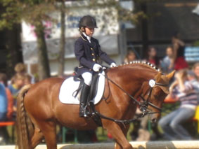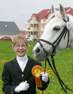 Sichtungsturnier zur Deutschen Meisterschaft in Lengelshurst-Kaiserhof am 11. + 12.06.2005 Karen Pfeiffer und „Ramon“ starteten beim Sichtungsreitturnier in zwei Dressurprüfungen der Klasse M/A, in der auch Profis mit am Start waren. Das heißt, die Konkurrenz war sehr groß. In der einen Prüfung wurden ihre Leistungen mit einen 5. Platz belohnt. In der zweiten Dressurprüfung Klasse M/A fehlten nur wenige Wertungspunkte um in die Platzierung zu kommen. Zusätzlich starteten Karen Pfeiffer und „Ramon“ noch in einer Dressurprüfung der Klasse M/FEI. Hier erritten die Beiden sich den 4. Platz. Puh, und das alles an so einem heißen Wochenende.
