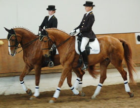 Als erste Prüfung fand das sogenannte „Pas de deux-Reiten“ statt. Dies bedeutet, dass zwei Reiter gemeinsam eine Kür vorstellen. Diese enthält Lektionen die gemeinsam (paarweise), aber auch spiegelbildlich ausgeführt werden. Das konsequente Training zu Hause zeigte deutliche Erfolge:
