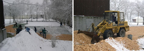 Arbeitsdienst am Sa.25.02.06 und Sa.04.03.2006 Die Arbeiten am Außenplatz sollen fortgesetzt werden. Als nächste Aktion sollen die Baumstämme als Umrandung gesetzt werden.Am kommenden Samstag, 25. Februar 2006 ab 8.30 Uhr kommt unser Helfer mit seinen Maschinen.Allein kann er die Arbeiten natürlich nicht erledigen. Deshalb benötigen wir ganz dringend kräftige Helfer. Auch am Samstag, 04. März 2006, ab 8.30 Uhr soll weitergearbeitet werden. Hier bitte Schauffeln - und wenn möglich Schubkarren - mitbringen, denn wir füllen den Außenplatz mit neuem Material. Für die nicht ganz so kräftigen Helfer gibt es auch etwas zu tun. Vor Samstag sollte der Platz "laubfrei" gemacht werden. Also Kids, schnappt euch einen Laubrechen und befreit den Platz vom Laub. Arbeitsstunden notieren nicht vergessen.