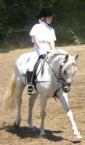 Also im Stall ist Rower ganz lieb und genießt es sich putzen zu lassen. Ich wusste von Papa, dass es nicht leicht war, Rower zu reiten. Als ich aufstieg, fühlte ich mich, als wäre ich auf einem Schaukelpferd. Denn ich bin es nicht gewöhnt, so ein großes Pferd zu reiten. Dann sagte Inge, ich sollte antraben (zum Glück waren wir auf seiner Lieblingshand – links-) es ging alles gut. Doch auf der rechten Hand wollte er gar nicht mehr antraben – aber ich schaffte es! Auf einmal erschraken ein paar andere Pferde und Rower fing auch an zu „buckeln“ – aber fair, so dass ich „keine“ Probleme hatte, mich oben zu halten. Aber schnell war er. Insgesamt war es aber eine tolle Reitsunde und ich finde Rower ganz toll lieb.