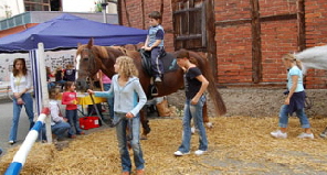Großbottwarer Straßenfest Das Wetter meinte es gut mit den Festbesuchern. Das Ponyreiten war bei den „Kleinen“ auch dieses Jahr wieder sehr beliebt. Andrang gab es ebenfalls beim Kinderschminken. Für die „Großen“ schenkte der Reit- und Fahrverein neben Wein und Bier besonders leckeren „Cocktails“, die auch „vegetarisch“, das heißt ohne Alkohol waren, aus. Die gutgelaunten Damen hinter der Theke der Cocktails- und Saftbar und der DJ Bernd sorgten für tolle Stimmung.